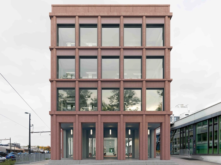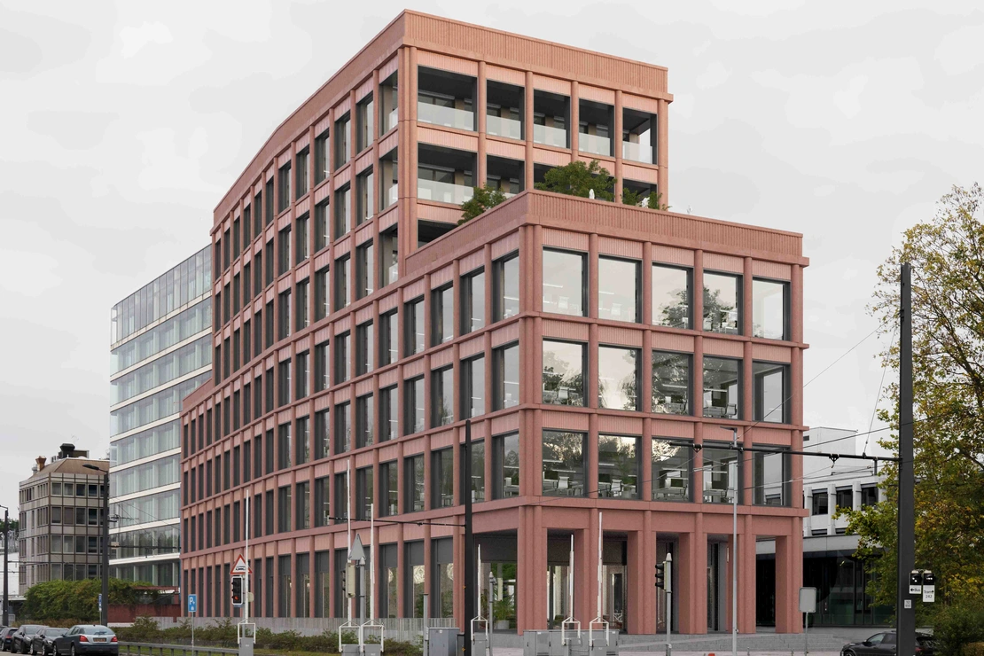 Der Entwurfsvorschlag soll das bestehende Volumen in ein zeitloses Gebäude mit urbaner Silhouette verwandeln. Ein dreistöckiger Turm wird als Teilerweiterung zum bestehenden Gebäude hinzugefügt. Die nuancierte Höhenwanderung verleiht dem Gebäude eine neue Präsenz in der städtischen Struktur und kommuniziert mit dem benachbarten Turmvolumen. Die neue Eingangssituation erhält von den umliegenden Kolonnaden eine besondere Ausstrahlung und Attraktion. Hinter diesen Kolonnaden öffnet der „Kristall“ das Gebäude als Marktplatz für Händler und entwickelt mit seinem Café und Arbeitsplätzen für mobiles Arbeiten den Charakter einer hochwertigen und lebendigen Lobby. Ziel ist es, ein Gebäude mit hochwertigen Materialien und flexiblem Einsatz zu bauen, den CO2-Ausstoß zu minimieren und eine ökologische und ökonomische Lösung anzubieten(Text: Max Dudler).